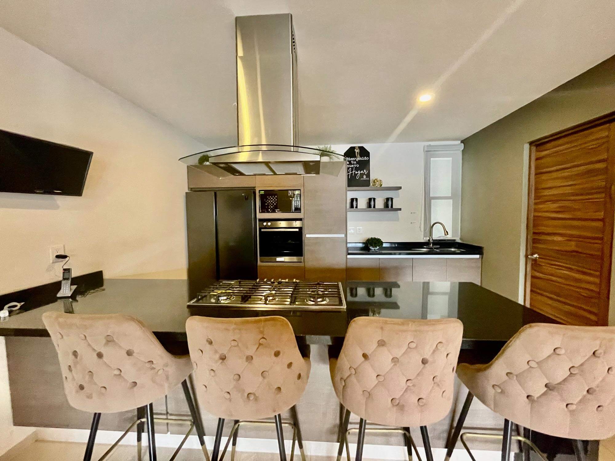 Cocina equipada con barra desayunadora