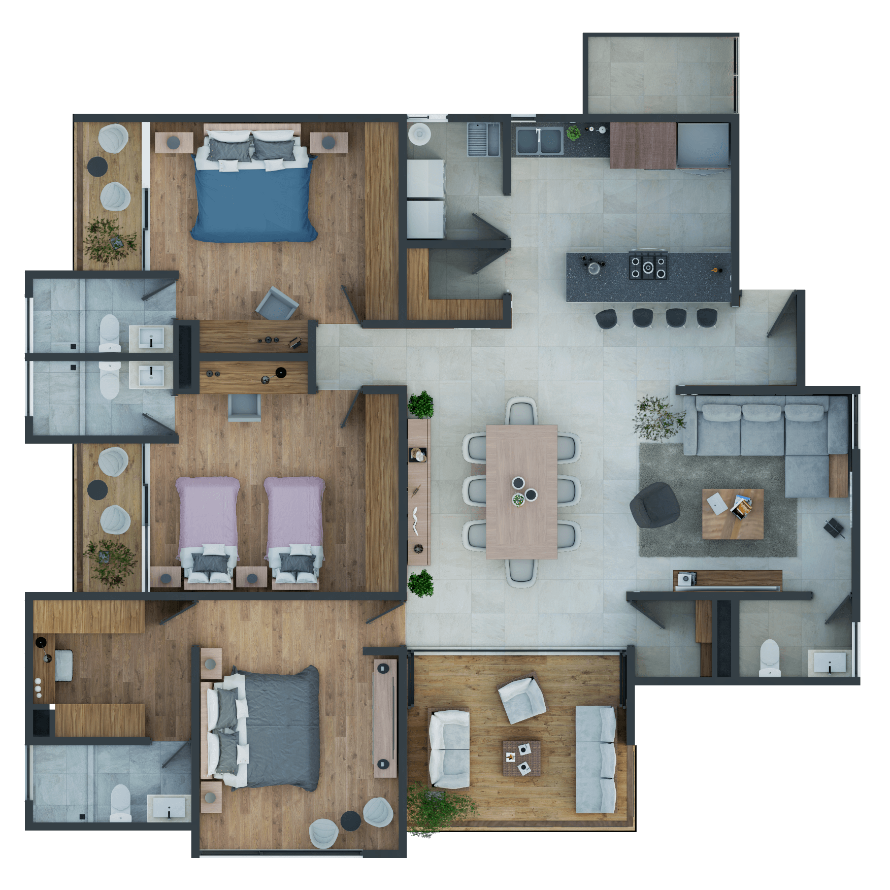 Recamara 1 /closet / baño / área de estudio / terraza privada